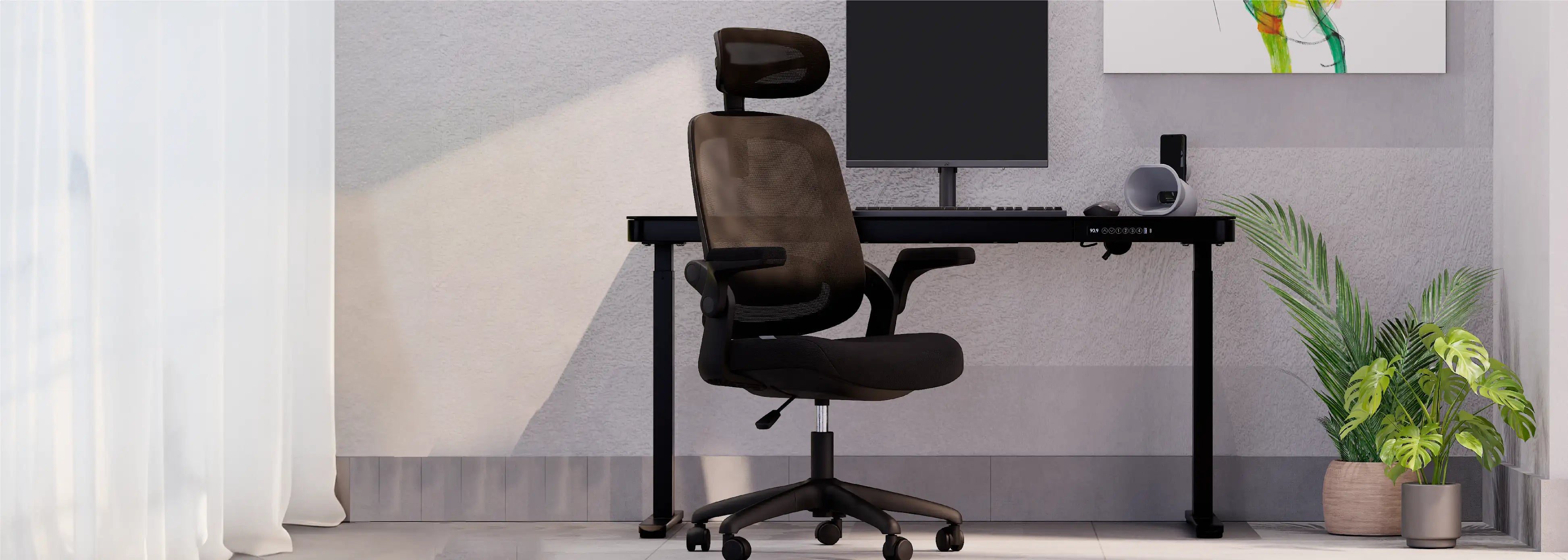 Revestida em Mesh, cadeira combina Nylon e Poliéster em sua composição, resultando em um material altamente resistente, flexível e respirável.
