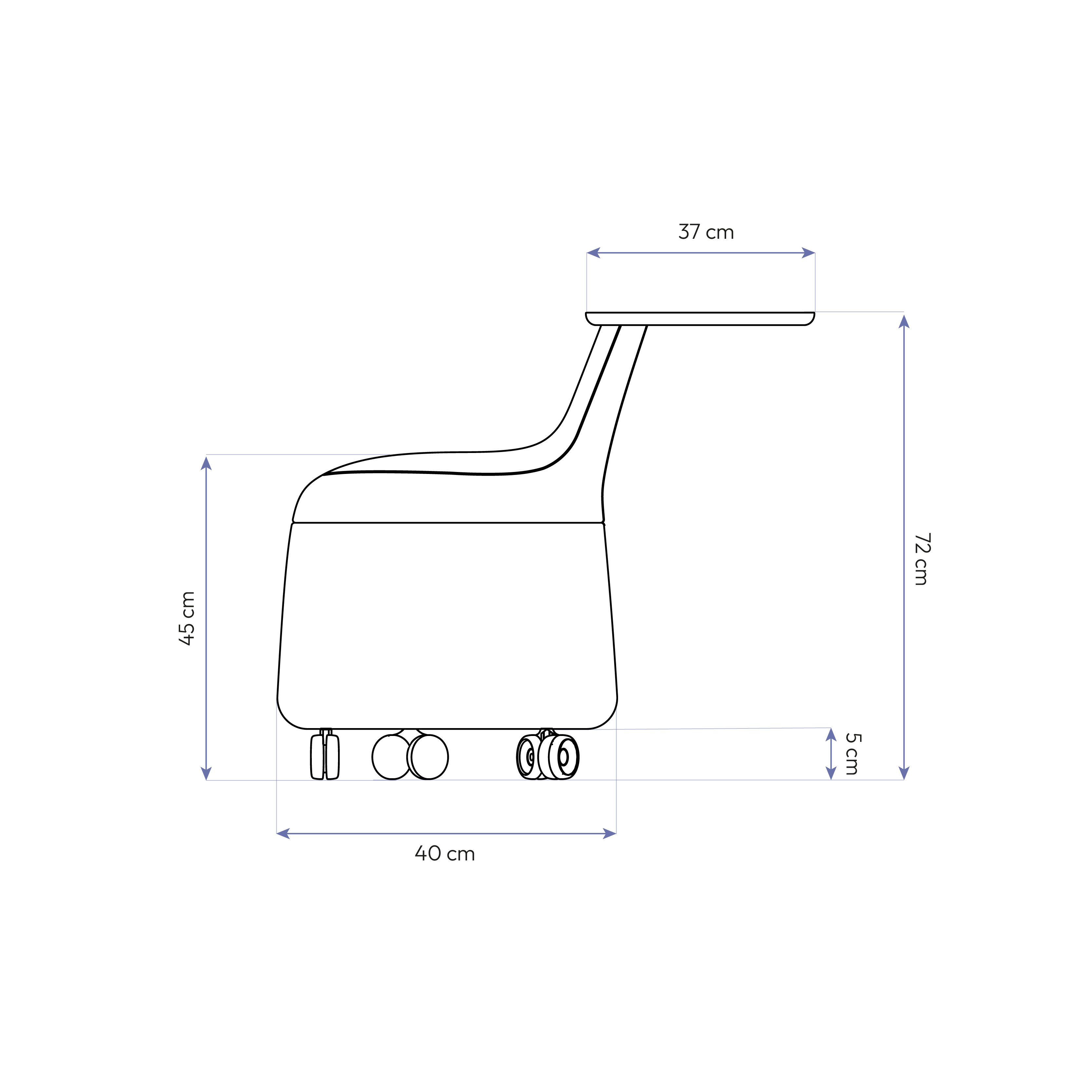 - Rodízios de 5 cm: Movimentação suave e segura em diversos tipos de piso.
