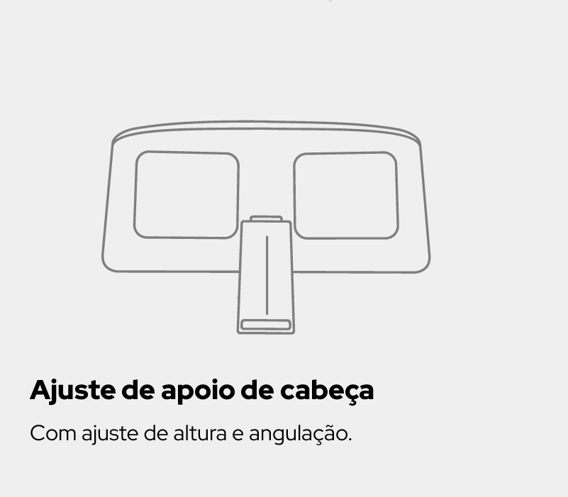 Suporte para a Cabeça e Pescoço: O Apoio de Cabeça é ajustável em altura e ângulo, oferecendo o suporte suave e essencial para a nuca e o pescoço, reduzindo a fadiga ao final do dia.