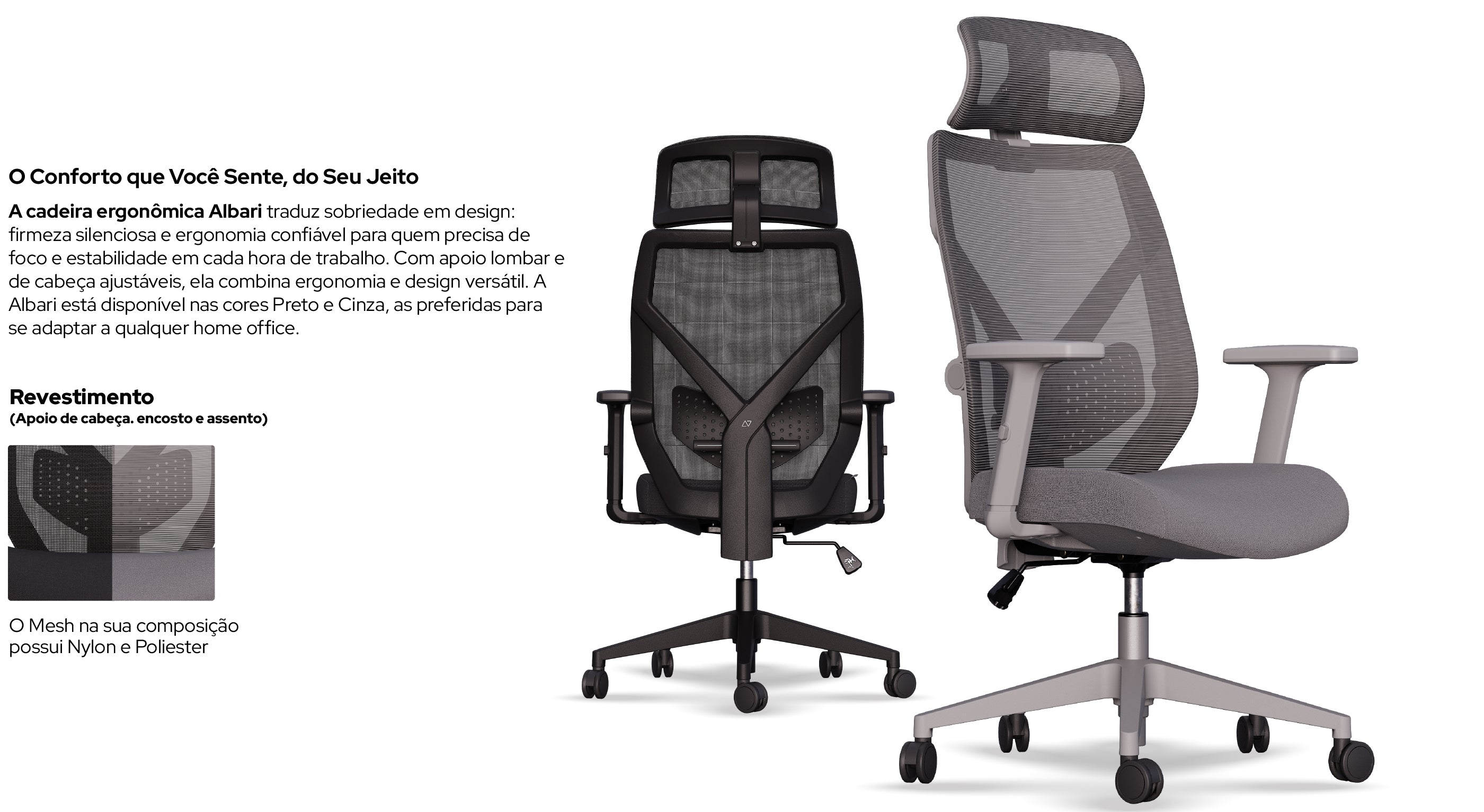 A Albari foi desenhada para oferecer um suporte postural que realmente funciona, sem sacrificar o conforto.