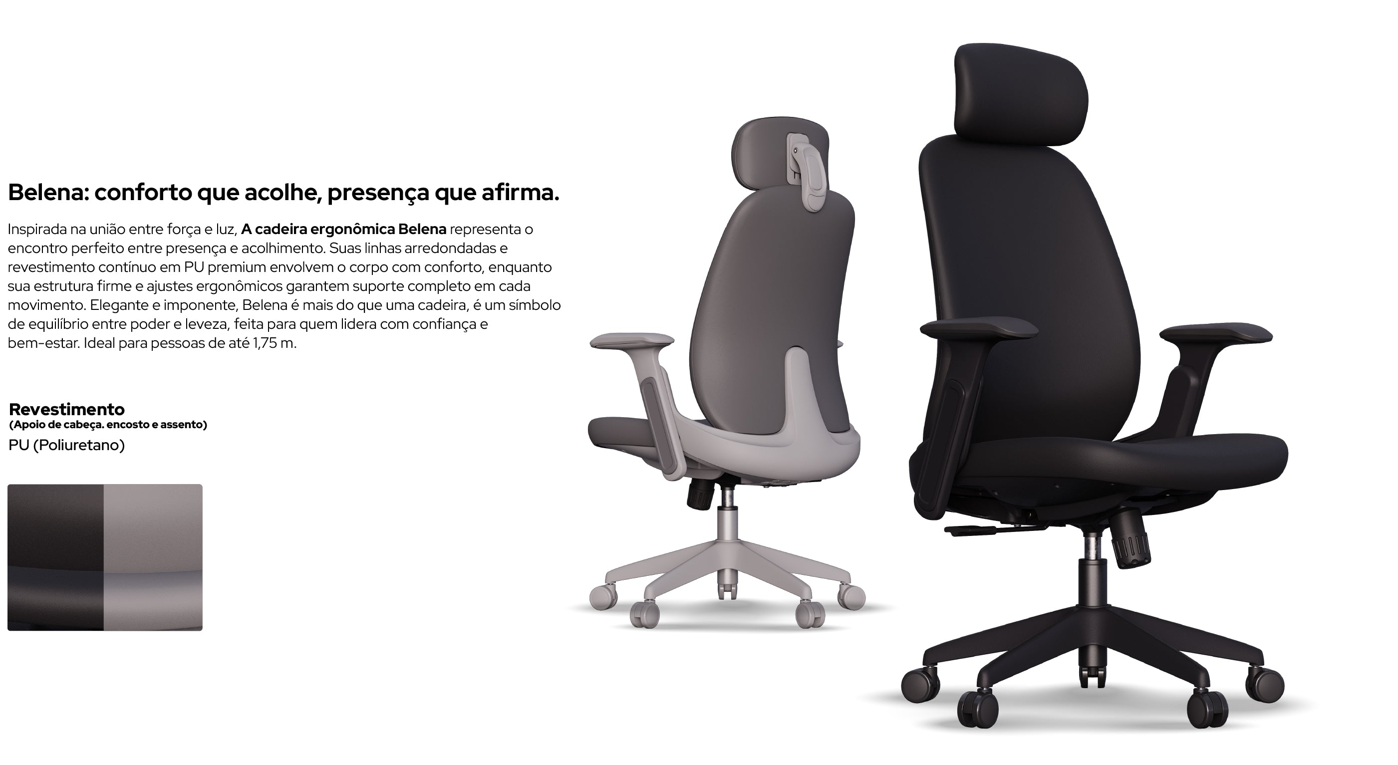 Invista no lançamento Belena: a cadeira giratória e ergonômica com o conforto luxuoso da e a segurança de . O conforto executivo redefinido.