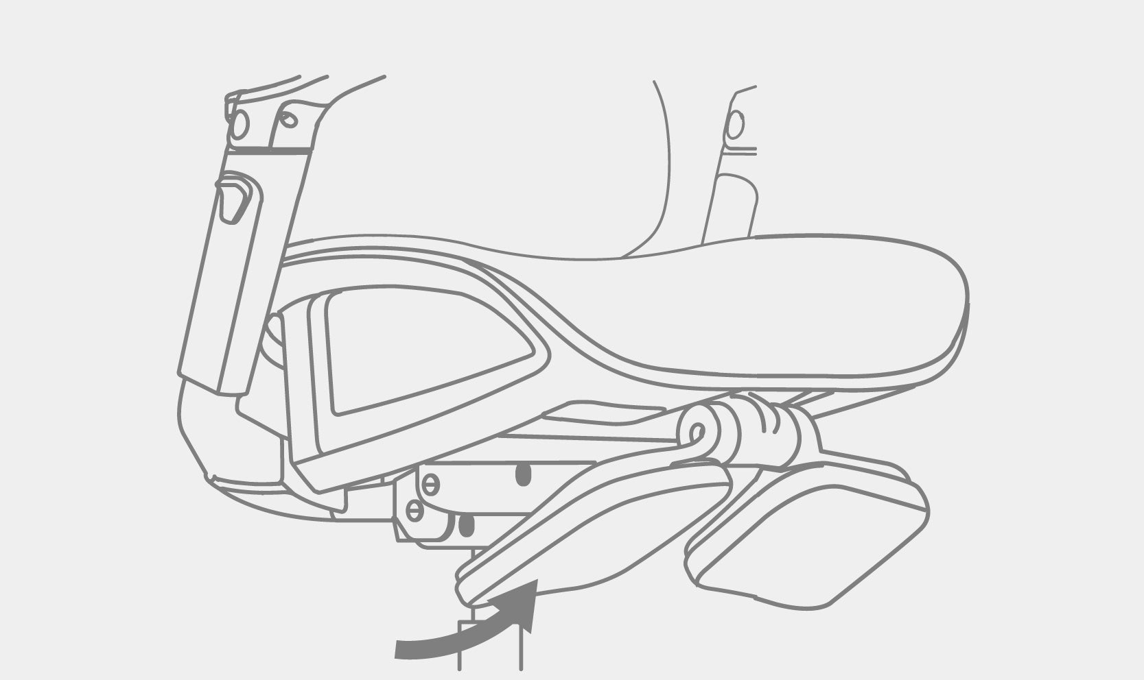 Ajuste de profundidade do assento para frente ou para trás e apoio de pés retrátil.