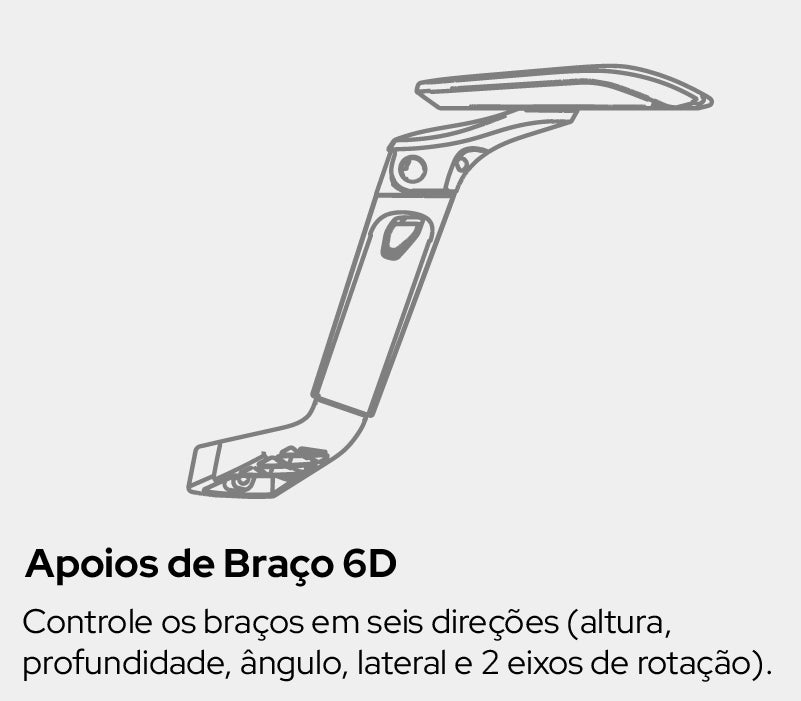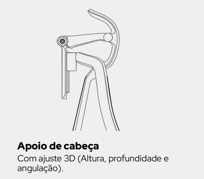 Ajustes de Precisão: Mecanismo , Apoio de Cabeça com ajuste de altura e ângulo, e ajuste de Profundidade do Assento, permitindo que a cadeira se molde perfeitamente ao seu corpo.