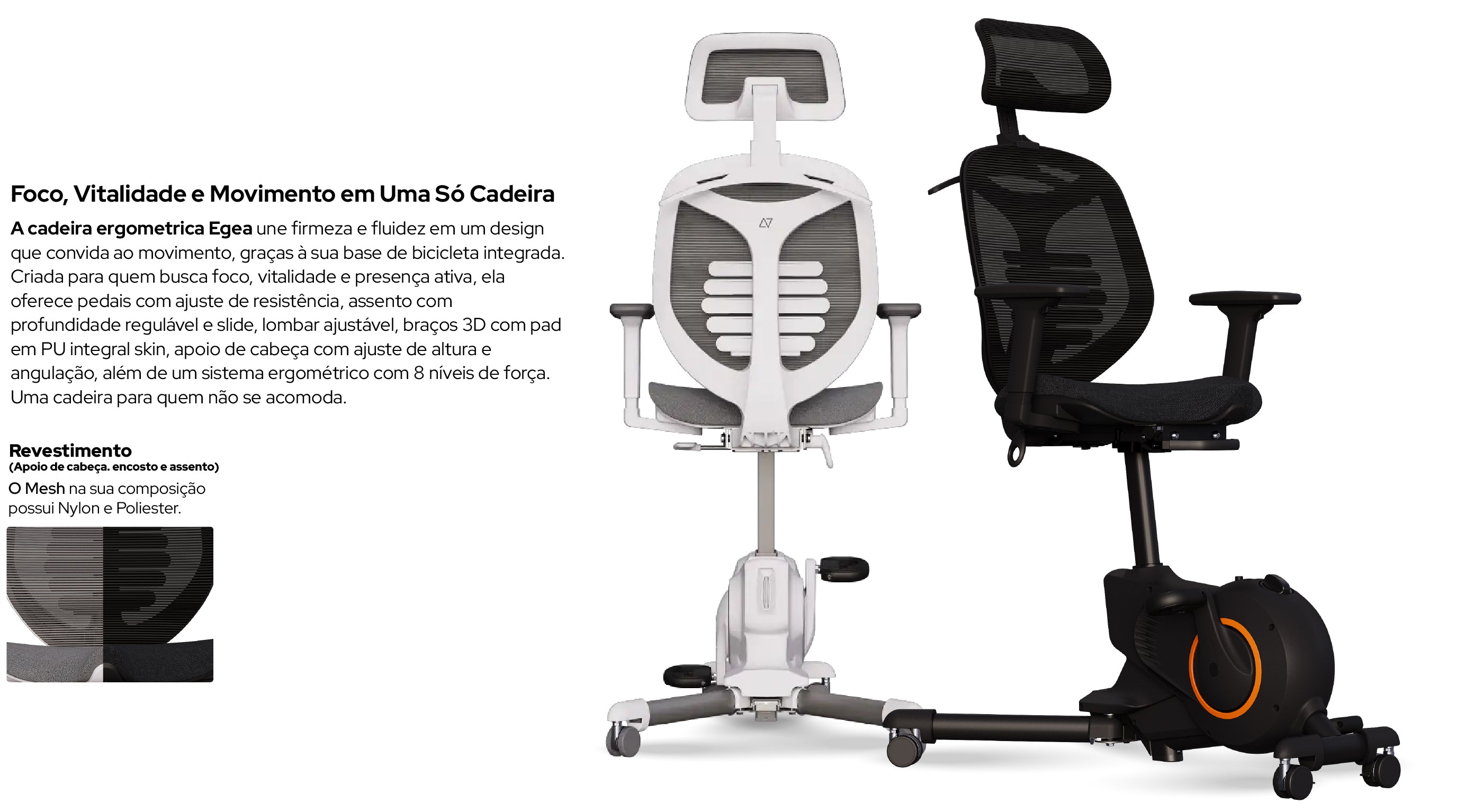 Inovação que conecta movimento e ergonomia. Feita para quem sabe que o melhor trabalho acontece quando o corpo está em constante movimento. Pedale rumo à produtividade com a Cadeira Egea.