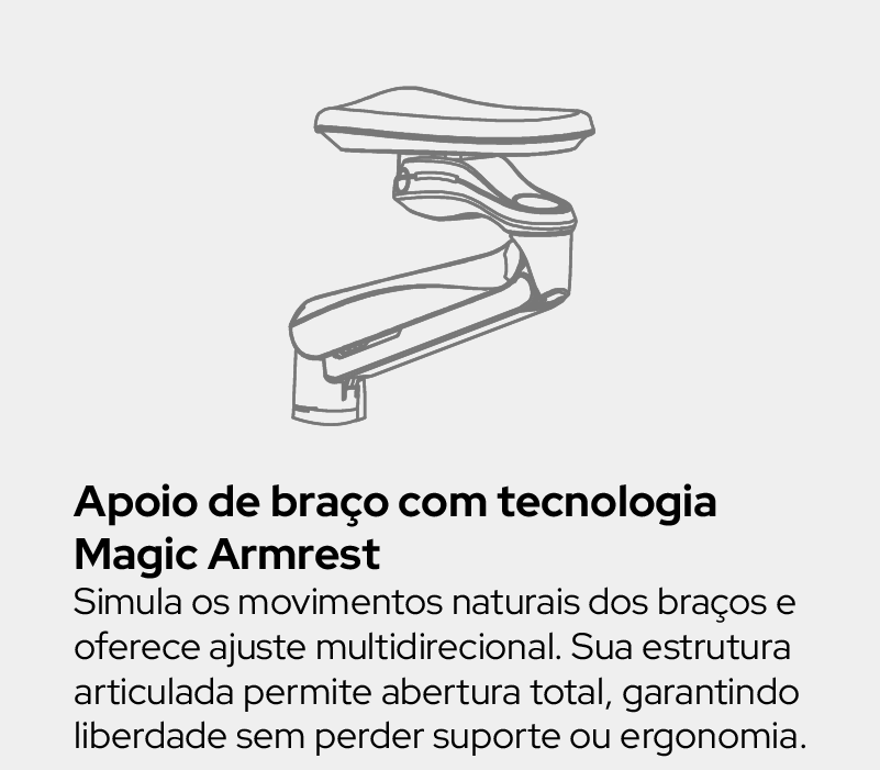 Braços : Os braços oferecem um nível de ajuste sem precedentes, garantindo que seus cotovelos e ombros estejam sempre perfeitamente alinhados, independentemente da sua atividade.