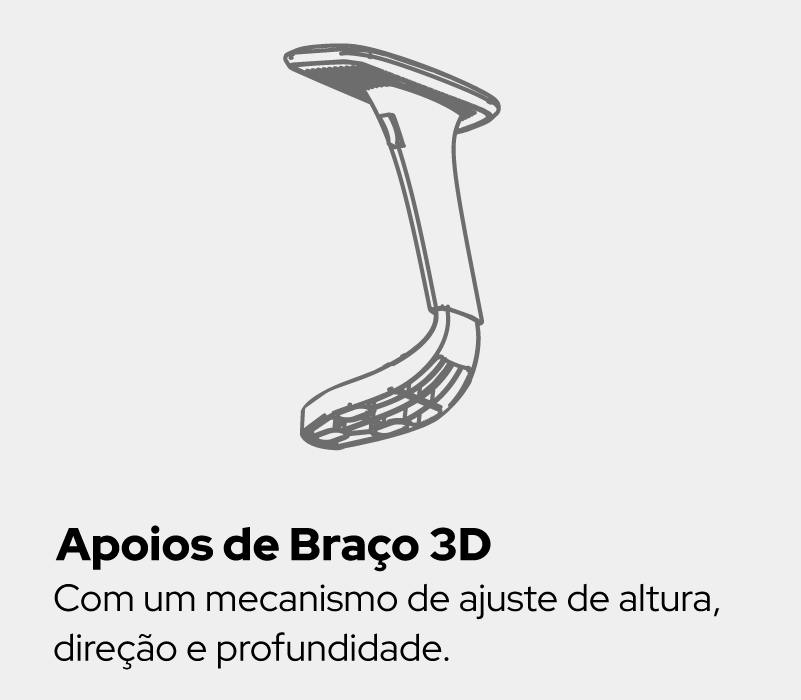 Braços Ajustáveis em 3D: Ajuste a altura, largura e ângulo dos apoios de braço para um conforto personalizado.