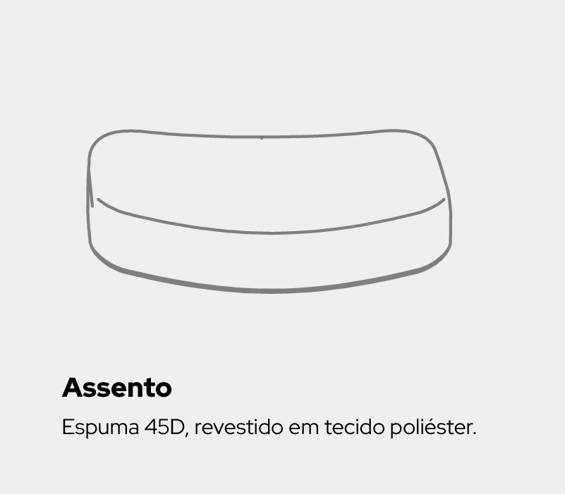 Assento de Conforto Premium (D45): O grande diferencial. A Samaia possui Espuma de Densidade 45D, que oferece um assento firme e incrivelmente macio que não deforma. Revestido em tecido de poliéster, proporciona o suporte acolchoado ideal para o conforto prolongado.