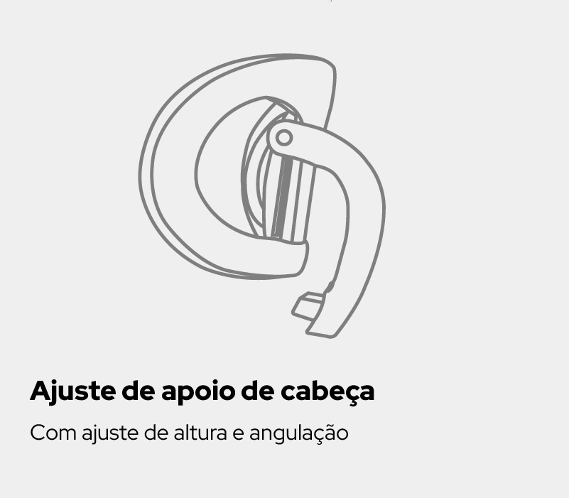 Apoio Cervical : O Apoio de Cabeça tem revestimento em e é ajustável em altura e ângulo, oferecendo o suporte suave e preciso para o seu pescoço.