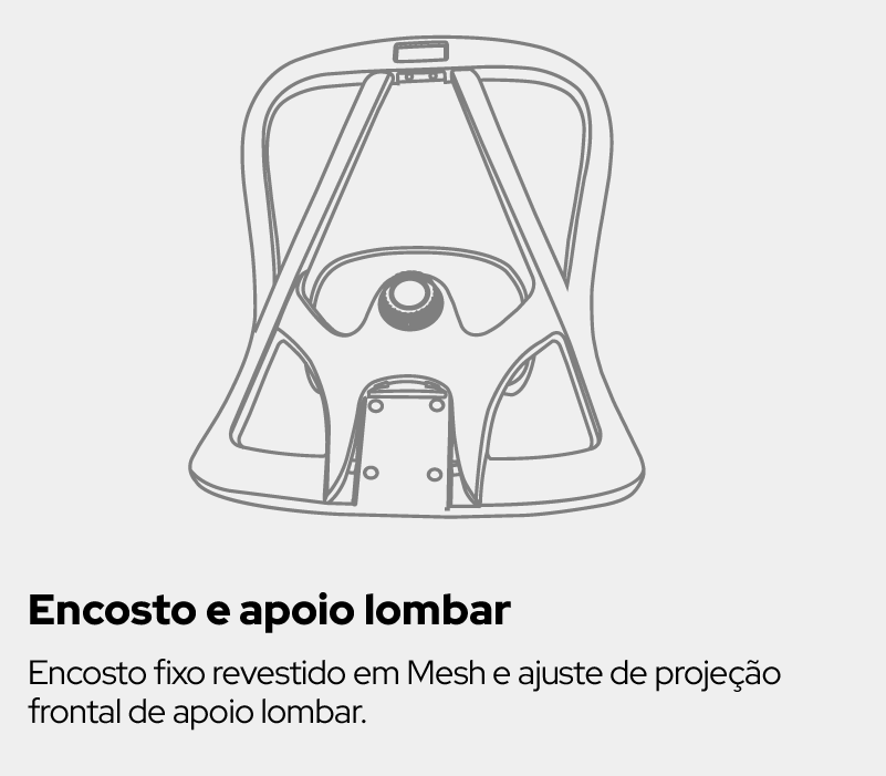 Encosto Climatizado (): Mantenha-se fresco. O encosto em Malha garante a ventilação constante nas costas, que é fundamental para evitar o calor e o desconforto em jornadas intensas.