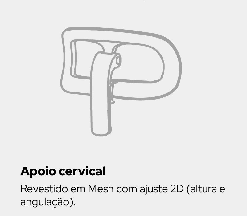 Conforto Premium: O assento com espuma e o encosto em mesh (nylon e poliéster) oferecem ventilação e conforto por horas, enquanto o apoio de cabeça ajustável proporciona suporte adicional para a região cervical.