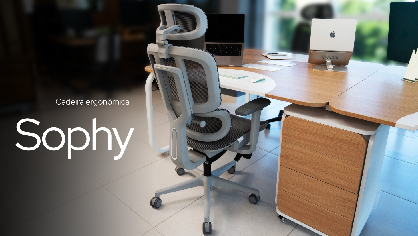 Por ser totalmente ajustável, Sophy é uma das cadeiras mais ergonômicas no mercado, se adaptando a diversos biotipos.