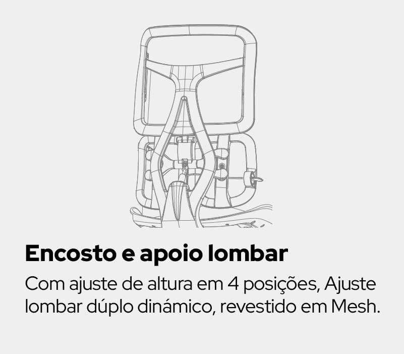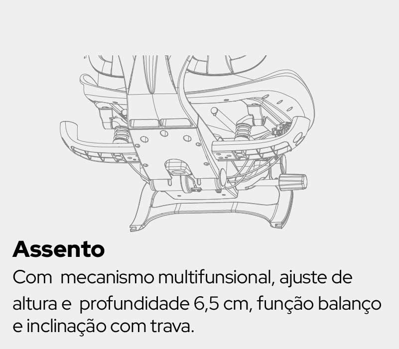 Reclino - Trava 4 posições (90 graus + 3 posições), 4 níveis de altura