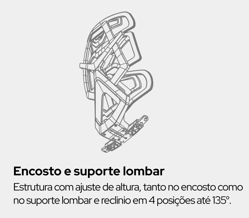 Reclino com Trava: O encosto reclina até com trava em posições, ideal para transições rápidas entre o foco e o relaxamento.