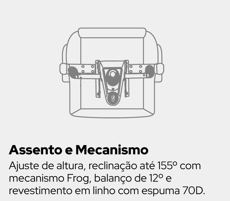 Inclinação até 150° (trava em qualquer posição); função balanço 17°