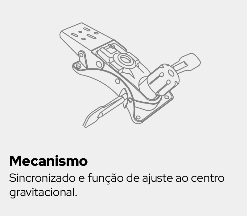 Inclinação até 135° (trava em qualquer posição); função balanço 12°