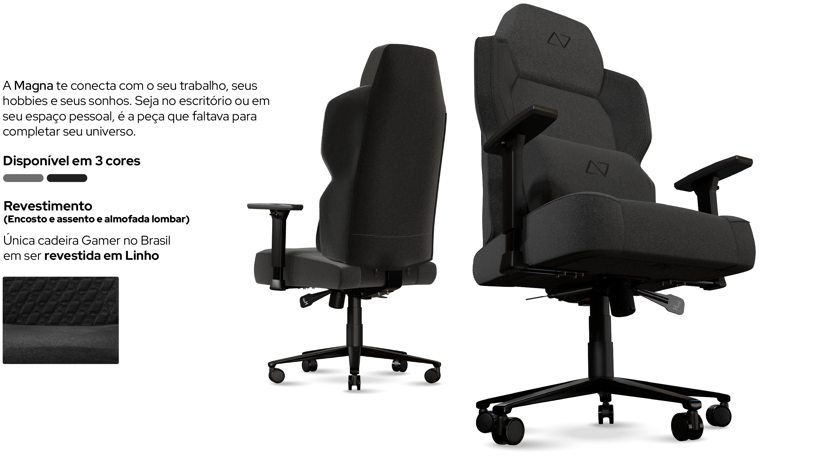 A cadeira Gamer Magna possui certificação BIFMA e atende aos requisitos da NR-17. Essas certificações asseguram que a cadeira foi projetada para proporcionar suporte adequado, prevenindo desconfortos e lesões relacionadas à postura inadequada.