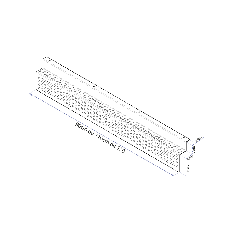Comprimento: 90 cm (tampo 120cm) - 110 cm (tampo 140cm) - 130 cm (tampo de 160 cm)