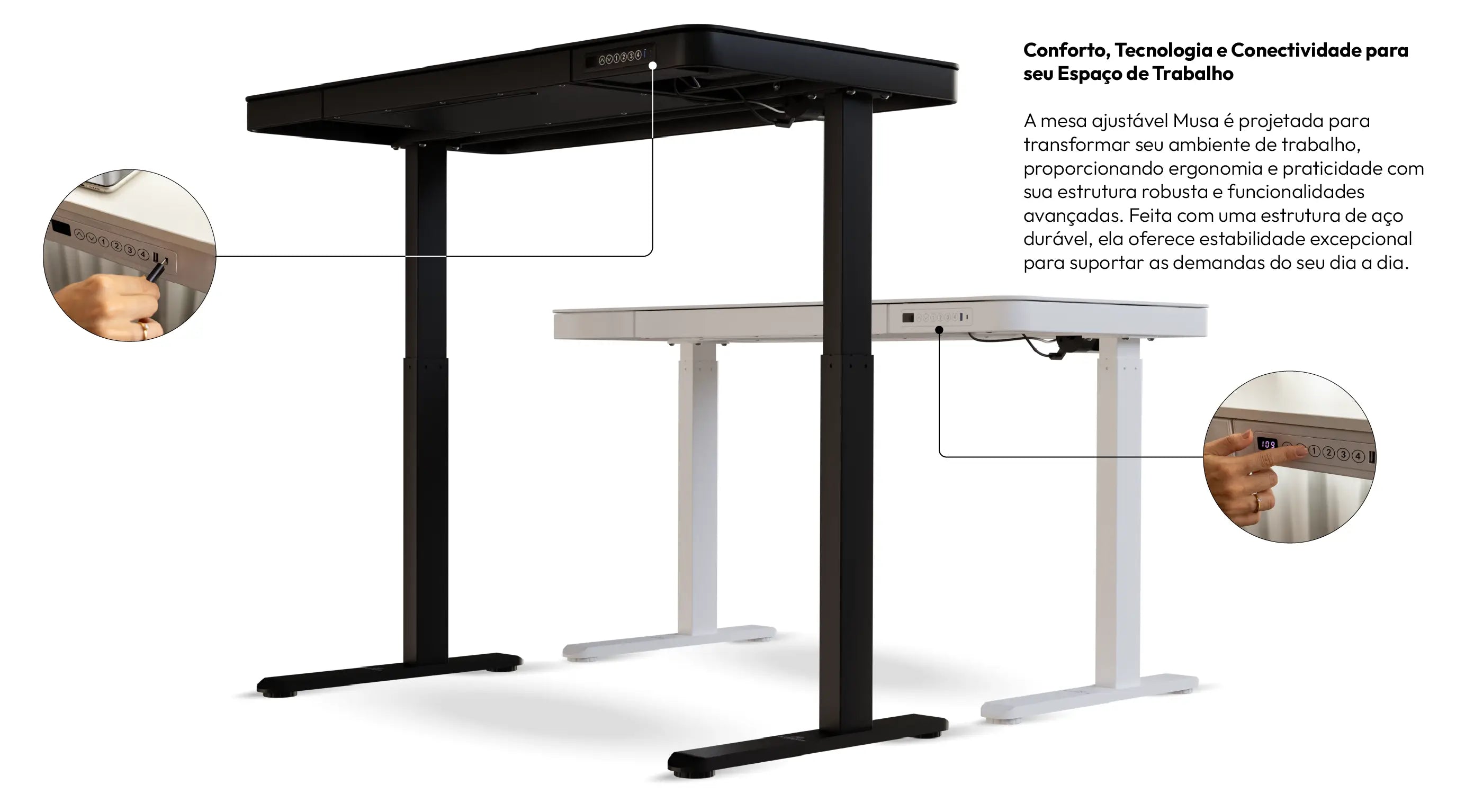 Mesa Ajustável Musa: Conforto, Tecnologia e Conectividade para seu Espaço de Trabalho