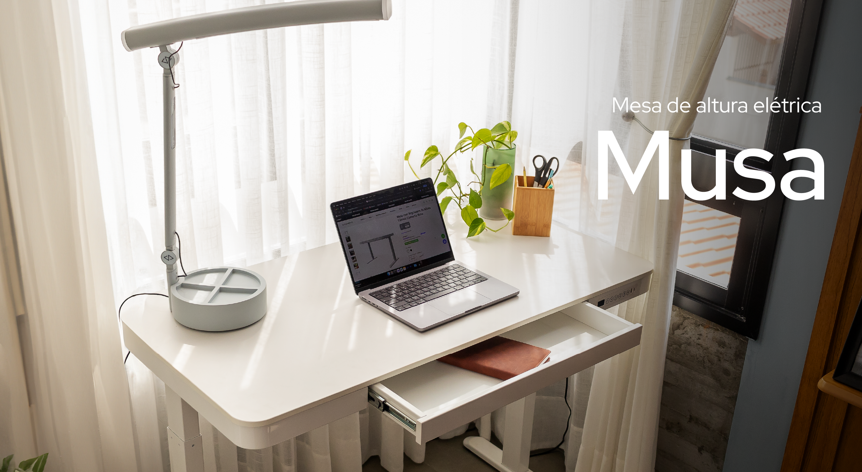 A mesa Musa é ideal para quem busca eficiência e conforto, integrando estilo e tecnologia para otimizar seu espaço de trabalho.