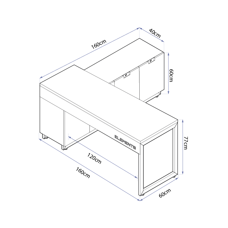 Armário 1614x644x250 mm Estrutura: 760x610x154 mm Tampo: 1640x740x60 mm
